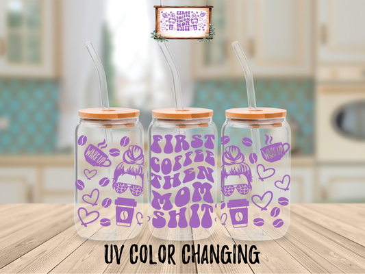 16oz First Coffee Then Mom Shit (UV Color Changing)
