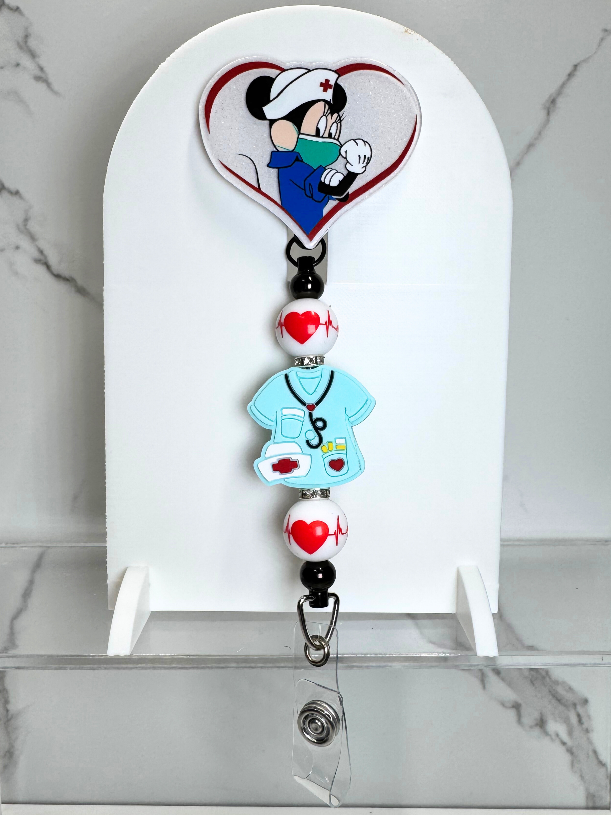 This badge reel combines functionality with style, featuring a permanently attached decorative face. Perfect for healthcare workers, educators, or anyone who wears a badge daily, it adds a fun, personal touch while keeping things practical. It also makes a great gift!