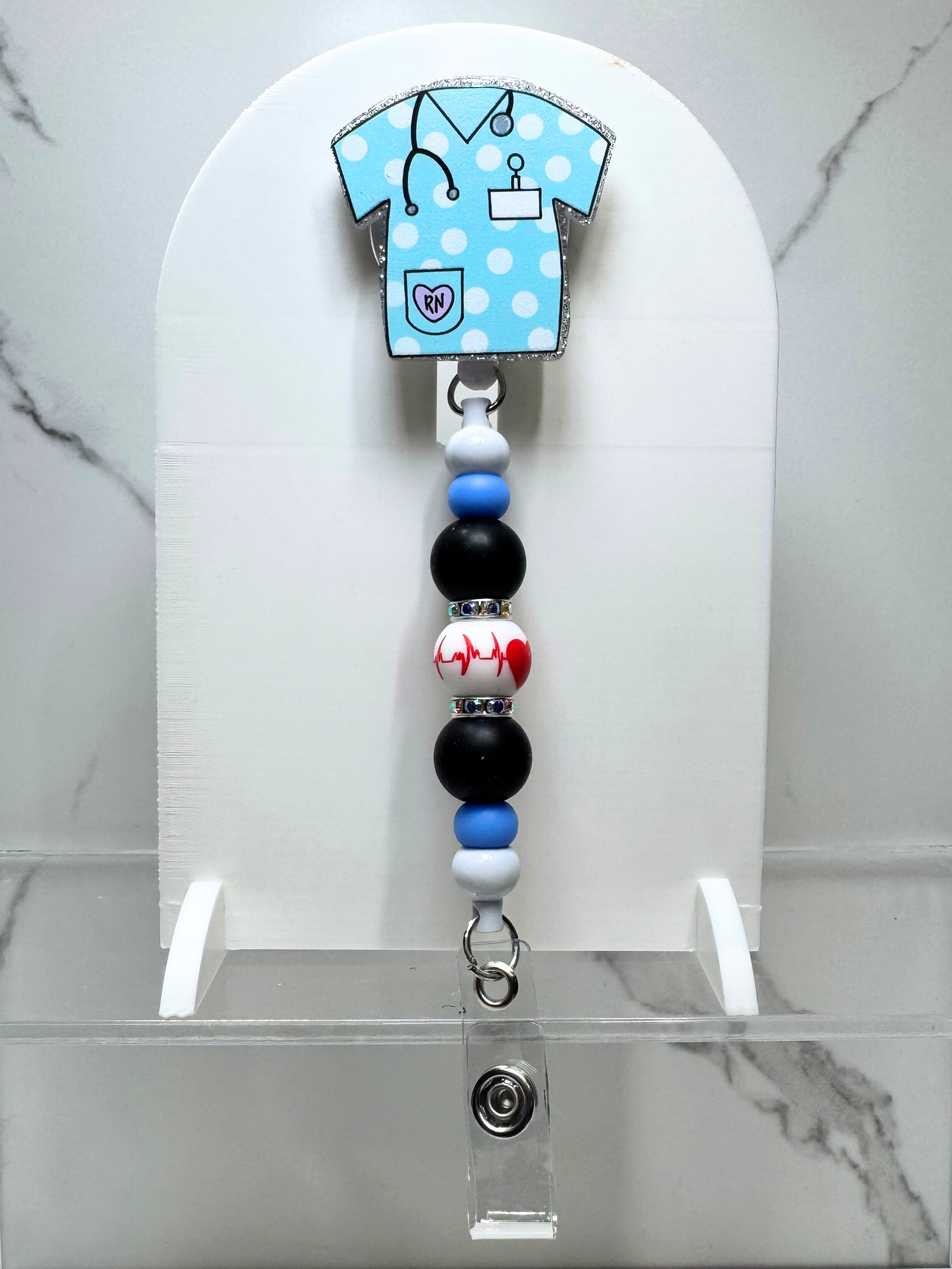 This badge reel combines functionality with style, featuring an interchangeable option—so you can switch up the look anytime you like. Perfect for healthcare workers, educators, or anyone who wears a badge daily, it adds a fun, personal touch while keeping things practical. It also makes a great gift!